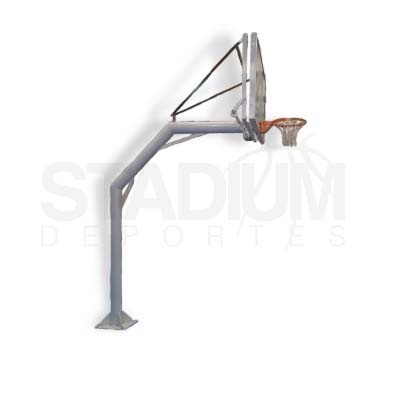Soporte escolar de gran rubustez en caño redondo. Apto para recibir tablero profesional y aro profesional. El largo de su brazo esta condicionado a las posibilidades de sujeciones del lugar de instalacion. Ideal para playones al aire libre en countries o plazas.